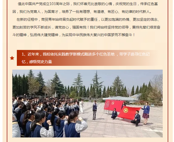 庆祝建党103周年 弘扬伟大建党精神