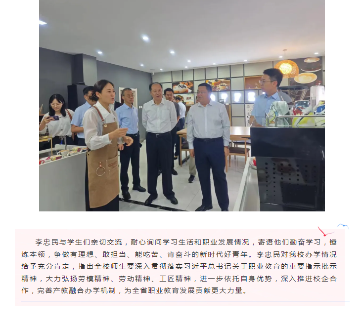 省政协副主席、省中华职业教育社主任李忠民来校调研