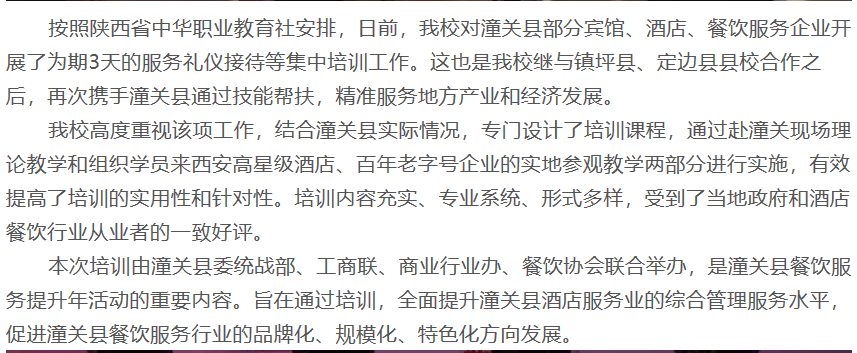 县校携手合作 助力潼关县提升餐饮服务工作