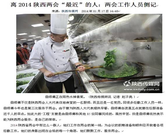 2014年陕西省两会召开期间,腾讯网、陕西传媒网、陕西网、白鸽网等多家知名网络媒体以《离2014陕西两会“最近”的人:两会工作人员侧记》为题多次进行报道和转载。