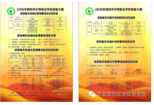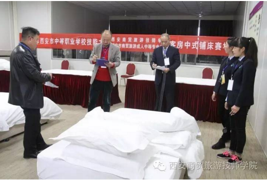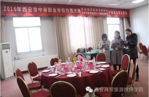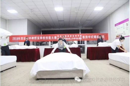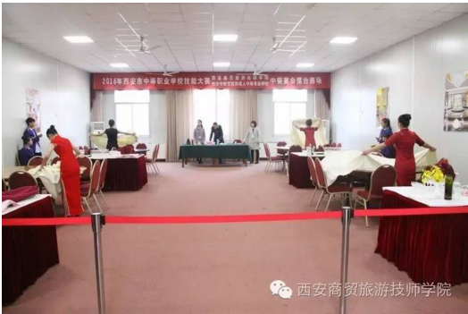 11月9日—10日,2016年西安市中等职业学校技能大赛旅游服务类中餐宴会摆台与服务、客房中式铺床、导游模拟、导游知识竞答赛项的比赛在我校成功举办,学校规范的赛事安排、热情的赛事服务、师生良好的精神面貌受到上级领导、评委、参赛院校师生的一致好评。