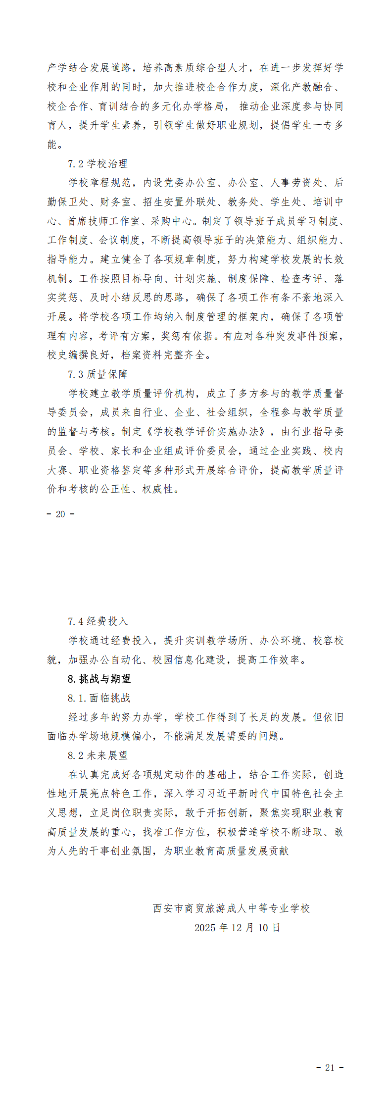 西安市商贸旅游成人中等专业学校2025年度教育质量报告