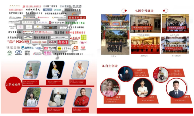 学校安置就业率高达98%以上,形成了标志的就业品牌:一是国字号就业,近年已向人民大会堂、钓鱼台国宾馆、国家会议中心等高端单位输送优秀毕业生百余名;二是职教师资培养,近年已有20余名优秀毕业生被西安职工大学、陕西工商职业学院、渭南技师学院、新东方技工学校、市县职教中心等多所院校聘为专业教师。